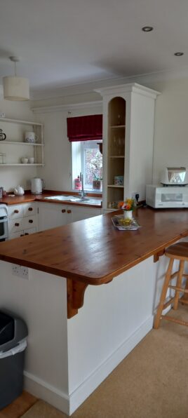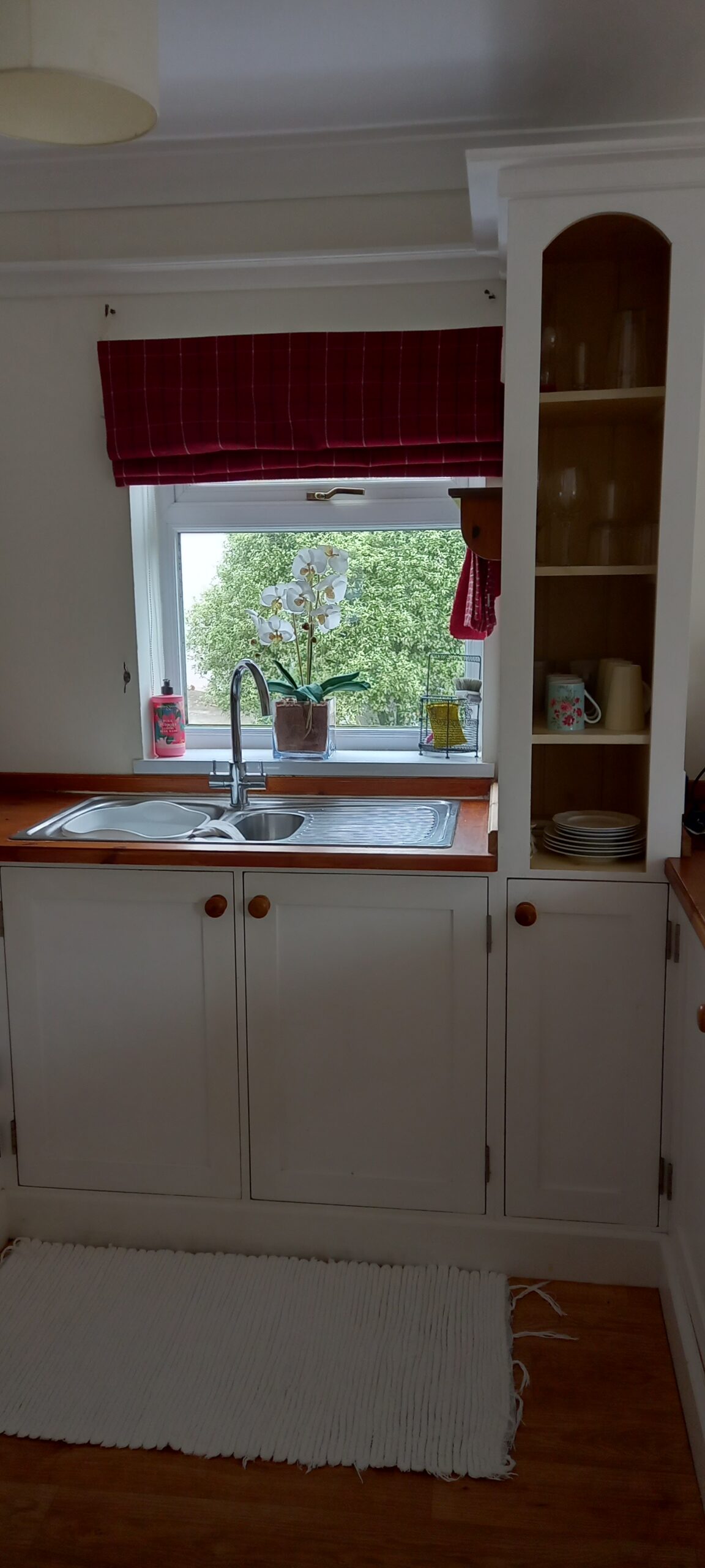 LOUNGE/KITCHEN: Attractive open plan area with breakfast bar, sofa, occasional chair. Kitchen is well equipped with a fridge, microwave, toaster and kettle. Lounge area includes Radio/ CD player, DVD player, TV, Wi-Fi connection, central heating and gas heater. The room has a large patio window leading out to the decking area and pretty garden.