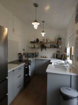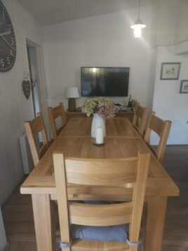 Bower cottage has 3 bedrooms sleeping up to 7 people consisting of a double bed and triple bedroom on the first floor and bunk beds to the ground floor with en-suite facility. The 1st floor bedrooms both have wall mounted flatscreen Freeview TV’s and built in double wardrobes. It also has a further two bathrooms, one located on the first floor and the other located on the ground floor.